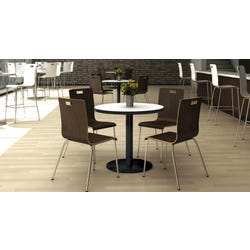 KFI Seating 9222 Series Cafe Chair entails one-piece construction, featuring a bent plywood shell and slight flex in the back for maximum comfort, plus laminate finish for durability and easy cleaning. Frame is constructed with durable 3/4-inch round tubing of 16-gauge steel. Stacks 5 high.Features