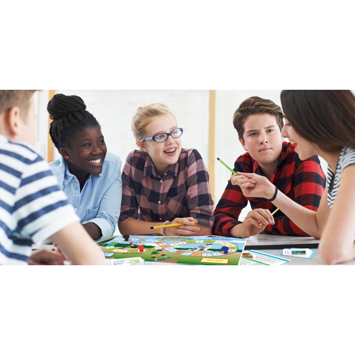 - Each game includes 30 full-color, review cards; game board; materials for 4 players; and student/parent instructions