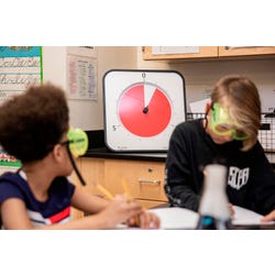The Time Timer MAX is 17 inches by 17 inches so it can be seen in larger spaces such as gymnasiums, cafeterias, auditoriums, and large meeting rooms. It’s also eight timers in one – with customizable durations and changeable timer faces, the MAX can countdown as low as 5 minutes, or as high as 24 hours. Included with the MAX are 3 two-sided timer faces – 5/15 minutes, 30/60 minutes, 120 minutes/Dry Erase Board timer face allowing for maximum flexibility and customization, in addition to “set markers.” The three colored set markers can create time blocks on any face by snapping them into the grooves between the red disk and numbers. The MAX can be used on a flat surface, hung on a wall, whiteboard, or map rail. 1 bracket mount is included. Requires two C batteries (not included).An ideal resource for use during National Literacy Month in September.