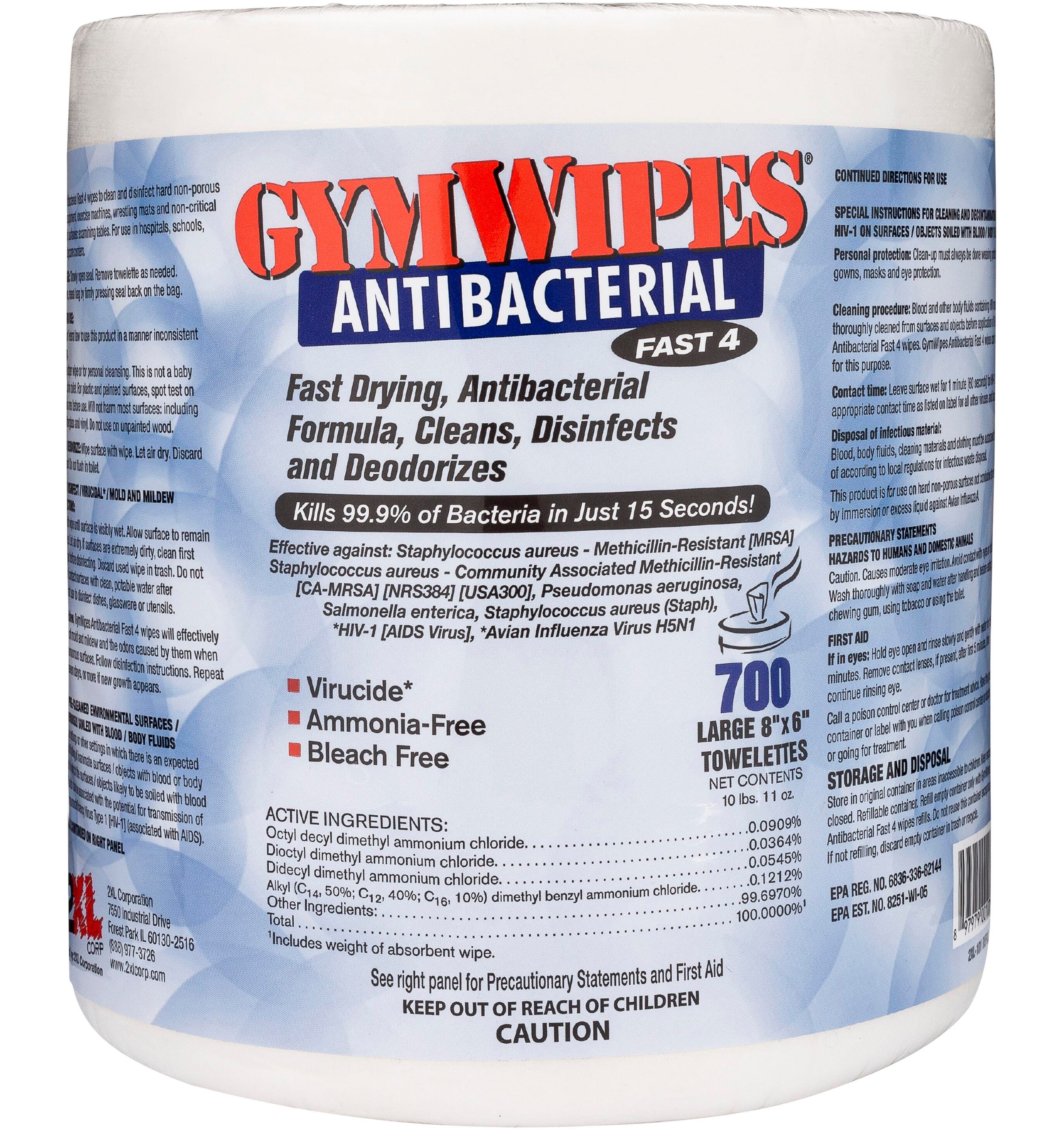 GymWipes Antibacterial Towelettes are an easy, hygienic way to lower the risk of infection and cross-contamination. Perfect for controlling and eliminating organisms on high-traffic surfaces that people come into contact with every day, they sanitize surfaces and kill 99 percent of bacteria in 15 seconds. EPA-registered disinfectant wipes work well on acrylics. Once applied, the formula dries fast. They are alcohol-free, bleach-free and phenol-free. Each extra-thick, super-absorbent wipe measures 8 x 6 inches. Disposable wipes refill the 2XL Antibacterial GymWipes Bucket (sold separately).
