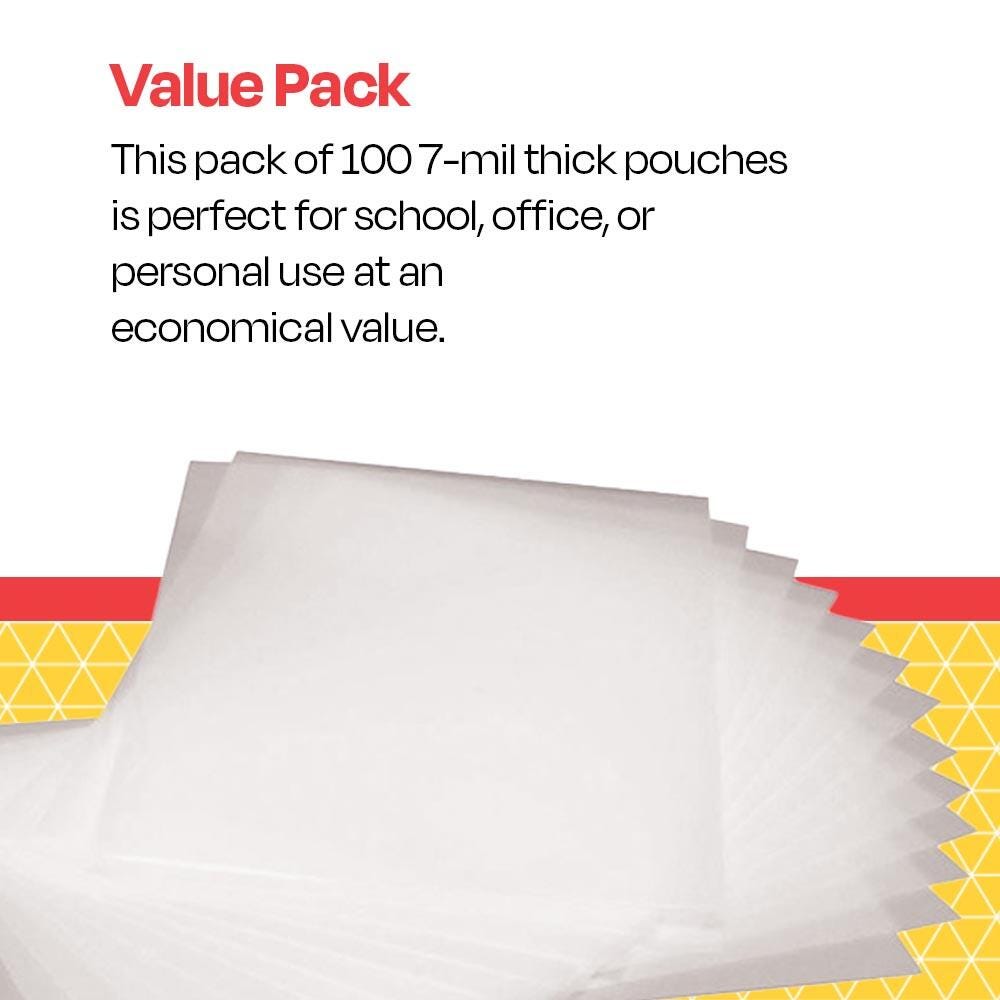 Laminate in seconds (and without crippling paper) with these handy slip pouches from School Smart! Each pouch consists of two sheets of laminate attached on one side and can be used with a hot laminator. Each box also includes two carriers to keep your laminator clean. The pouches come slightly larger to ensure complete sealing. Ultra clear and transparent. Each pouch measures 2-1/2 x 3-1/2 inches and is approximately 7 millimeters thick.