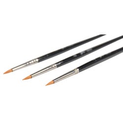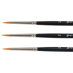 These Sax golden taklon watercolor paint brushes come in size 2. The synthetic brushes feature short handles for better comfort and control. Each lacquered hardwood handle has nickel-plated, seamless aluminum ferrules for long-lasting durability. Choose the responsive round brush design for all watercolor techniques and painting surfaces. Use the 3-pack in the classroom, art studio, or home.Features