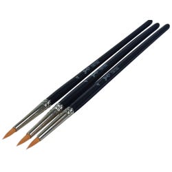 These Sax golden taklon watercolor paint brushes come in size 4. The synthetic brushes feature short handles for better comfort and control. Each lacquered hardwood handle has nickel-plated, seamless aluminum ferrules for long-lasting durability. Choose the responsive round brush design for all watercolor techniques and painting surfaces. Use the 3-pack in the classroom, art studio, or home.Features
