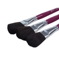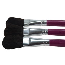 Sax oval wash ox hair paint brushes in a 1 inch wide size are durable, high-quality, and give you better control. The art brushes provide a soft touch and large capacity for applying bigger areas of paint. Crafted with ox hair, each art brush features short lacquered handles with seamless aluminum ferrules. The short handle design allows for better precision and comfort whether working on a tabletop or easel. Our 3-pack of oval brushes is perfect for all of your crafting needs in the class or art studio. Use the paint set for watercolor, inks, and dyes.Features