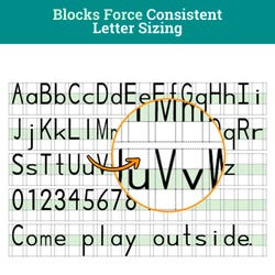 Perfect for a daily journal in the classroom or drawing and expressing your child's imagination at home. Channie's unique 3 block color coded system takes the stress out of writing neat letters and words. With 80 printed practice pages your PreK-1st grade child will be off to a great start on legible penmanship. Each page has one area above for drawing a picture and a writing area below for writing something about what was drawn. Blocks aid with consistent letter size and proportion between upper and lower-case writing, spacing, punctuation placement, and keeps writing flowing in straight lines. THE Best VISUAL handwriting workbook for beginners. 40 sheets printed front and back. Measures 8 x 11-1/2 inches.Includes: