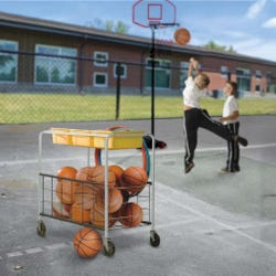 Copernicus Phys Ed Cart keeps all of your equipment organized, accessible, and mobile. The Phys-Ed Cart will keep you ready for the next activity during recess or Physical Education class. Quickly and easily move equipment from indoors to outdoors and from room to room. Large metal basket fits up to 20 basketballs. Features 5-inch casters, 2 of which lock. Frame measures 41 W x 23 D x 44 H inches; open tubs measure 12-1/2 W x 15 D x 6 H inches. Ten-year frame warranty; lifetime tub warranty.Includes: