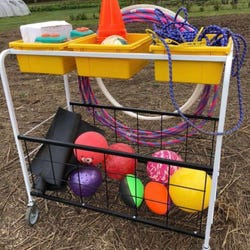 Durable and lightweight, this cart keeps gym equipment neat and organized.
