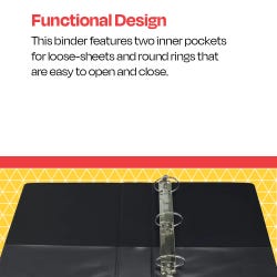 - The black presentation binder with 3 inch O rings creates better organization and easy access for different types of projects and paperwork at the school, office, or home