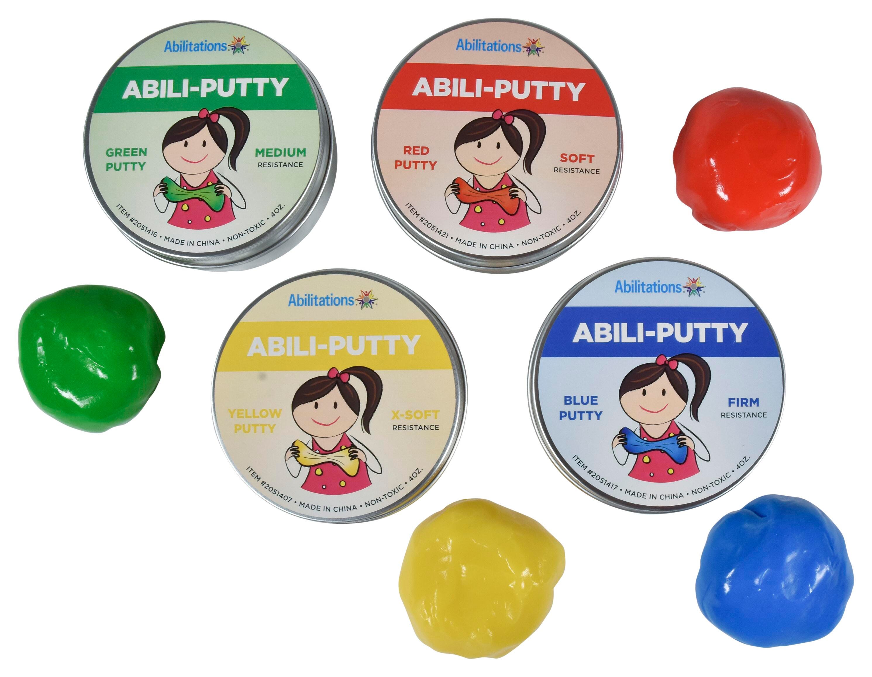 Roll, squeeze and stretch this putty to help strengthen hands, improve fine motor skills and reduce stress. Use with adult supervision. Not for mouthing or chewing. Product may stick to hair. Safety tested CPSIA compliant. Non-toxic.