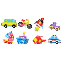 These "modes of transportation" are made of hard plastic and include one each of a bicycle, helicopter, rocket, submarine, school bus, truck, police car, steamboat, and sailboat. Add these fun treats to therapy putty while playing hide-and-seek to find all the pieces! Each piece measures approximately 1/2 x 1-1/2 inches. Blue putty not included.Features