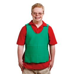 Weight and pressure provide the body with additional input to the muscles and joints, providing the proprioceptive system with more information. This vest uses hook and loop closures at the shoulders and sides allow for easy placement and adjustment. Side closures around back prevent unwanted adjustment or removal. Extra fabric at the side closure overlaps to allow room for growth and the bottom portion of the vest folds up to shorten the vest for individuals with shorter midsections. A common weight recommended for use is 5% of a client's weight; please consult with the child's therapist to adhere to their individual need. Measure around the chest for width, and from shoulder to waist for length. Vest measures 24 x 12 to 16 inches.