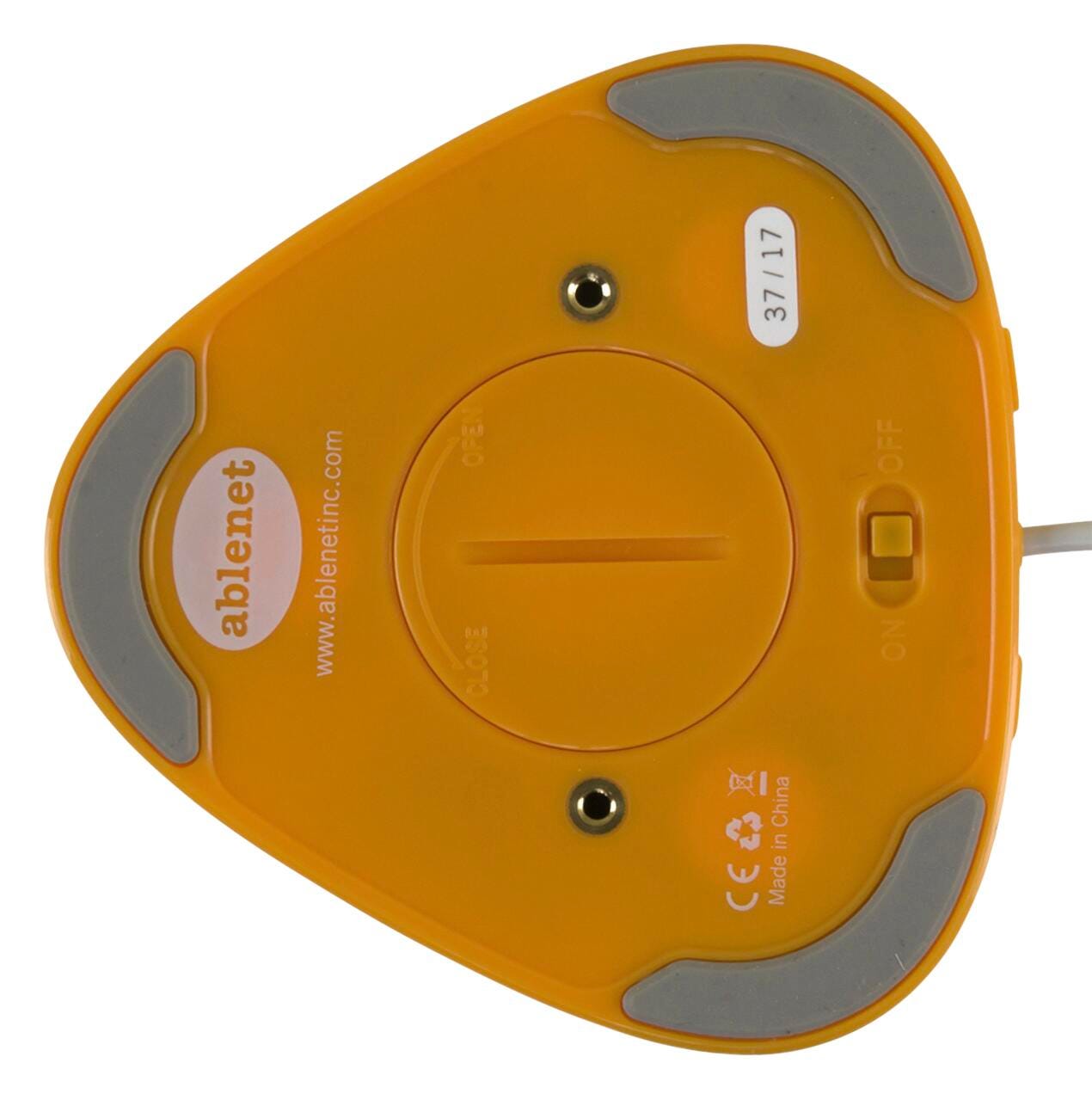 Any time the user is near or touching the activation surface, the BIG Candy Corn accessibility switch will activate. Individuals with fine motor impairments or low vision prefer the BIG Candy Corn over the LITTLE Candy Corn accessibility switch because it has an activation surface nearly two times the size. When activated, an auditory beep and light appear. You may turn off the auditory beep and light if the user does not need these prompts.Features