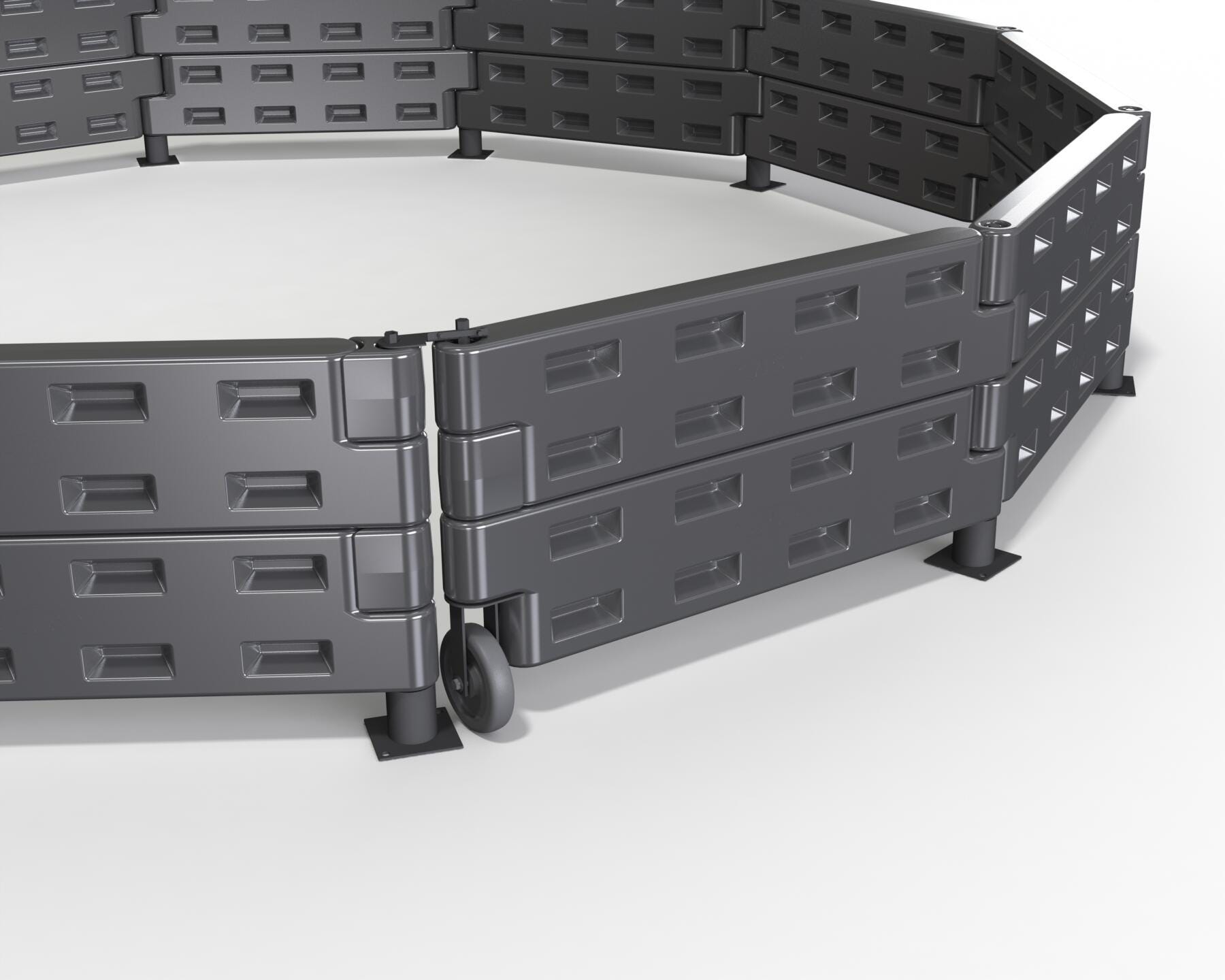 Introduce students to the ultra-fun game of Gaga Ball with the help of this Action Play Systems Ball Pit. Each kit is constructed utilizing our 12-inch-high playground borders connected with our proprietary stanchions specifically for our GaGa Ball Pits. Additionally, Action Play Systems GaGa Ball Pits come standard with our exclusive ADA Gate for easy pit entrance and exit, as well as ADA wheelchair accessibility. Once installed, our GaGa Ball Pits are 28 inches high allowing for maximum ball rebound and consistent play. Our stanchions can be permanently anchored if desired and are coated for maximum durability. Anchors not included. Additionally, our proprietary stanchion design allows each wall of the GaGa Ball pit to be raised 4 inches for easier cleaning of debris. Includes 40 boarder panels and 20 stanchions.