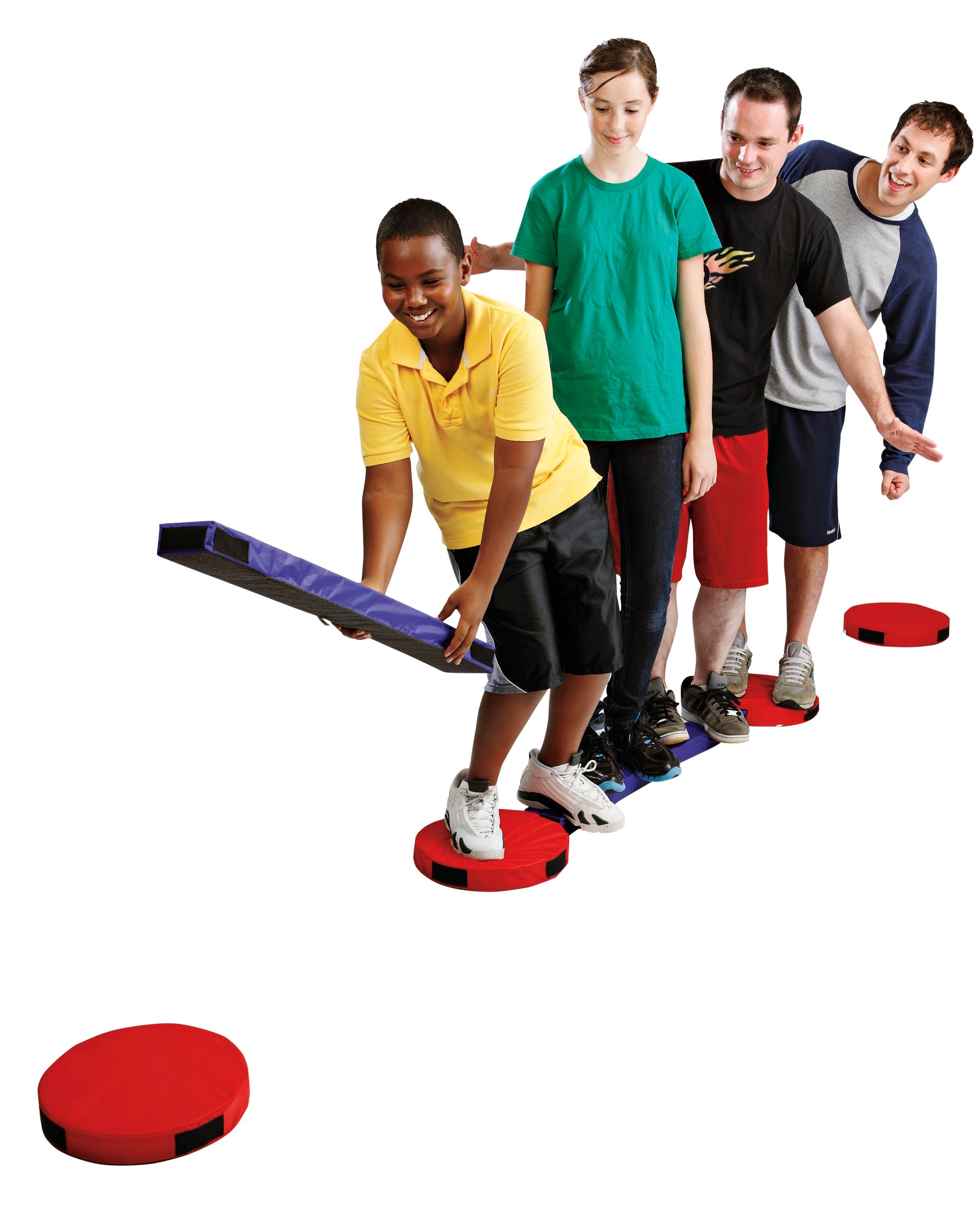 Fun AND challenging! Set includes twelve 35-inch blue walking boards and four 13-inch red circular bases that connect to create a multitude of exciting kids balance games and activities.