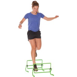 . Made of lightweight molded plastic each hurdle is adjustable to 6, 9 and 12 inch heights by simply lifting the bar. Folds flat for portability. Set of 6.Features