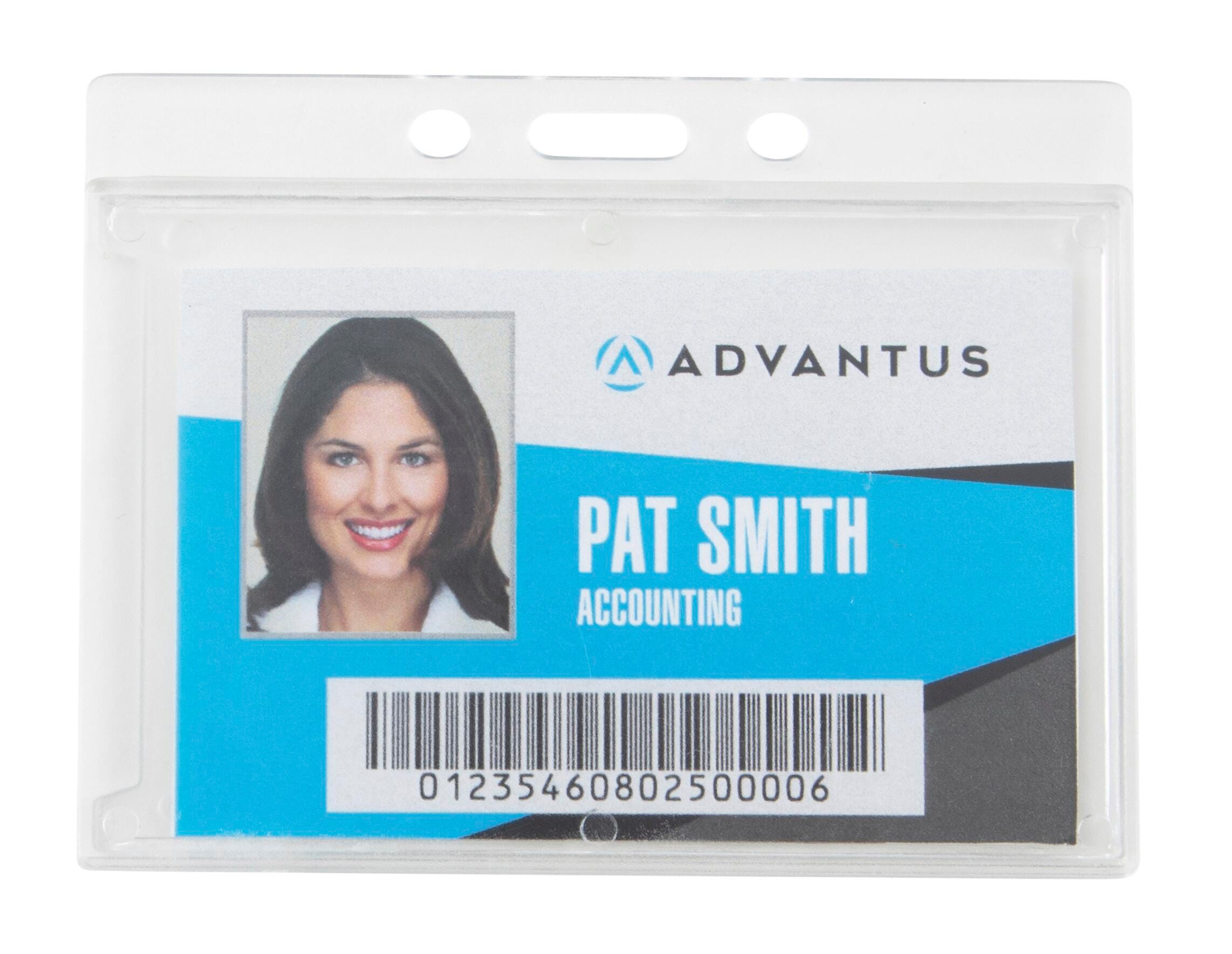 Advantus ID Badge Holder, Frosted, HZNTL, Pack of 25, Clear Frosted