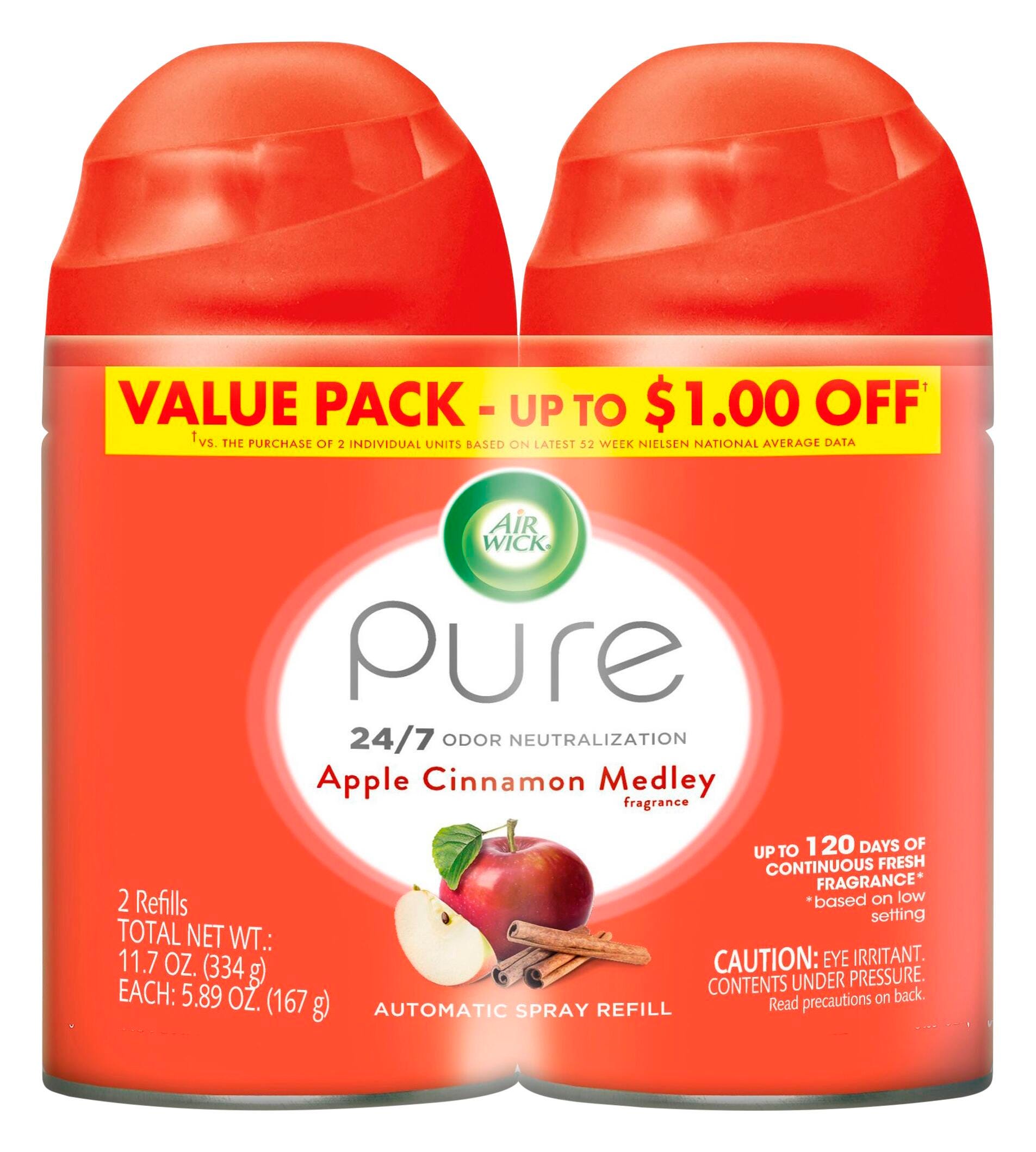 Air Wick Freshmatic Refill, 6.17 Ounces, Apple Cinnamon, 2 Count, Case of 3
