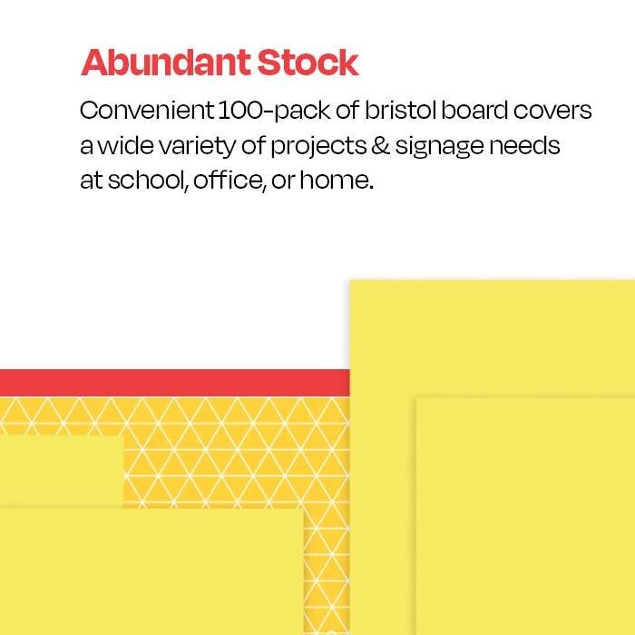 Whether creating a masterpiece or a prize-winning presentation, School Smart has got you covered! Our medium-weight, canary bristol board has excellent folding quality with clean creases for making signs, posters, and a variety of construction craft work. Each board is made of 100 percent sulphite with 100 lb. weight basis that keeps your designs clean, smear- and blot-free, while great for mixed media to capture any idea!