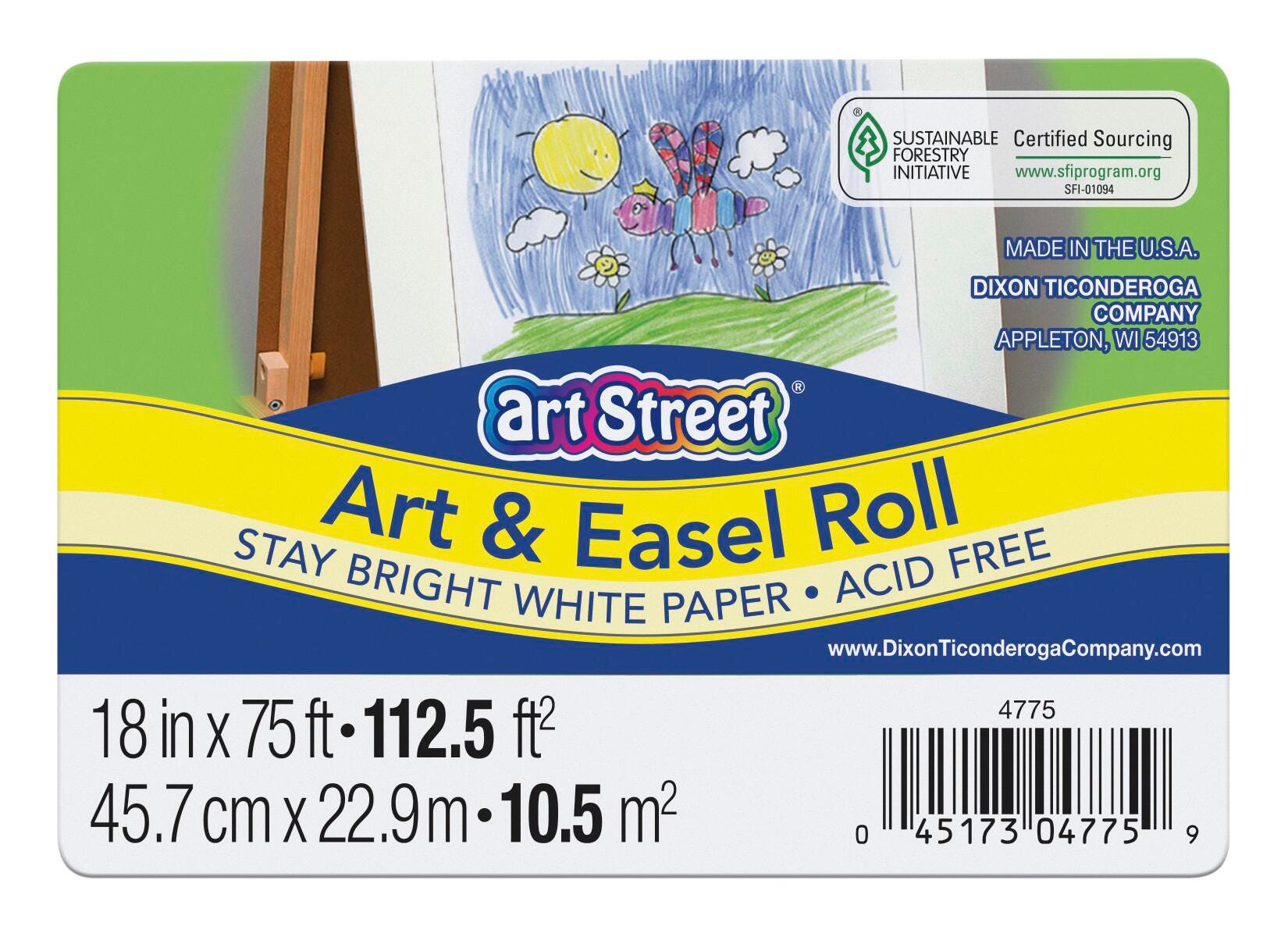 Art Street Super Value Easel Paper Roll measuring 18 inches x 75 feet works with a double adjustable easel with a paper roll holder. Using paper on a roll gives the user the control to roll out as little or as much as is needed, minimizing waste and saving money.