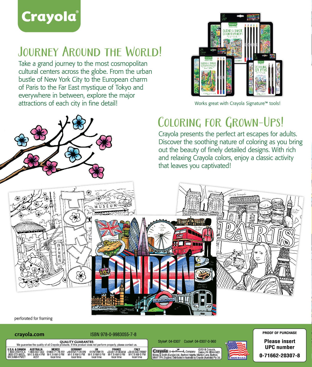 Get lost in the relaxing creativity of the Crayola City Escapes coloring pages. Each page has an iconic cityscape from around the world, providing discovery and excitement with every stroke from your colored pencils, markers, or crayons. Select pages have black backgrounds that are perfect for embellishing with gel-colored pencils (pencils not included). This coloring book includes 40 premium 8 x 10 inch pages of international cityscape line art and an instructional forward with special techniques for coloring with gel pencils on the dark pages.