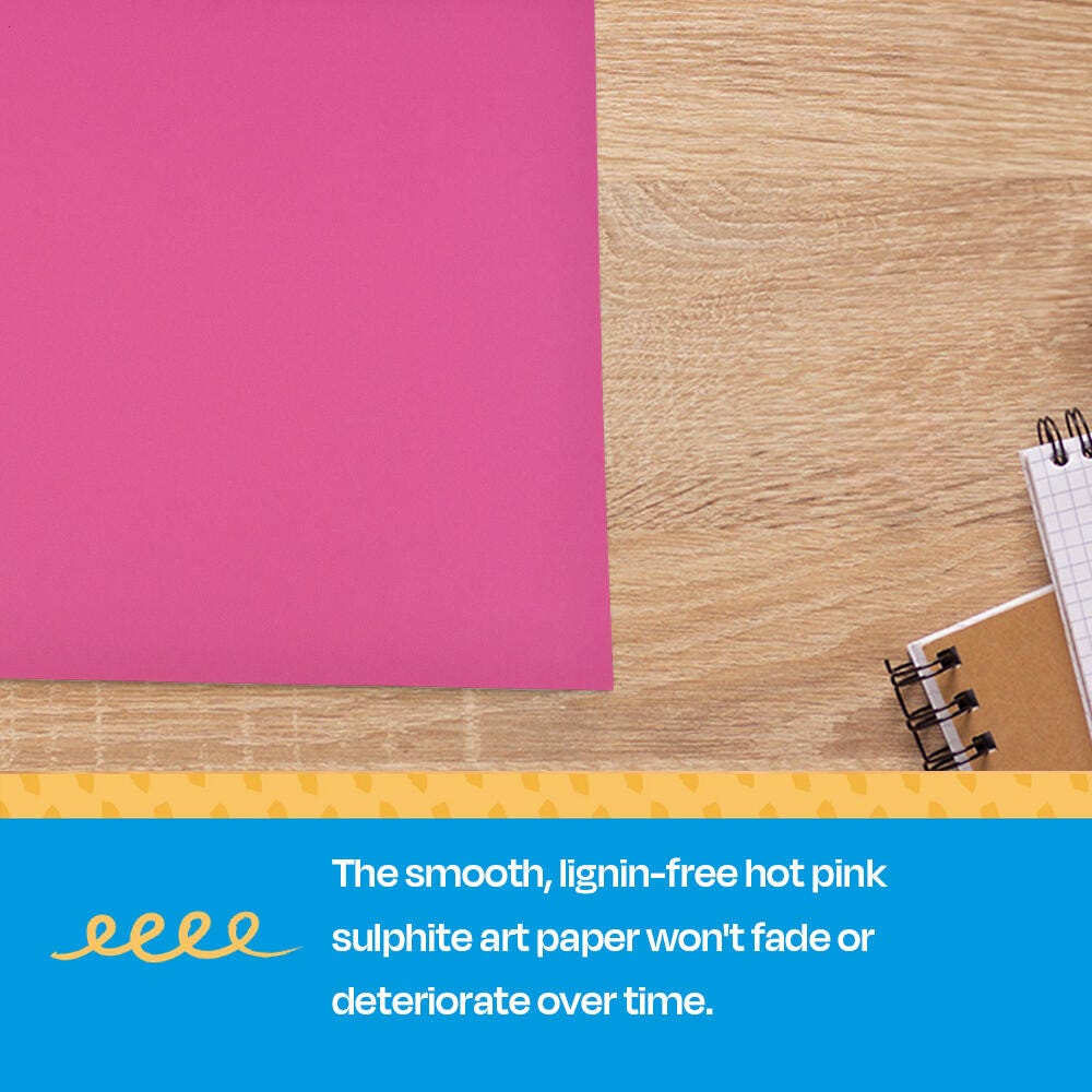 The smooth surface of this sulphite art paper makes it a higher-quality alternative to regular construction paper. Bright, intense colors maintain a uniform tone throughout the entire surface of the sheet. No mottling or streaking as in some lesser quality papers. This pack offers 50 sheets of hot pink art paper, each measuring 12 x 18 inches.