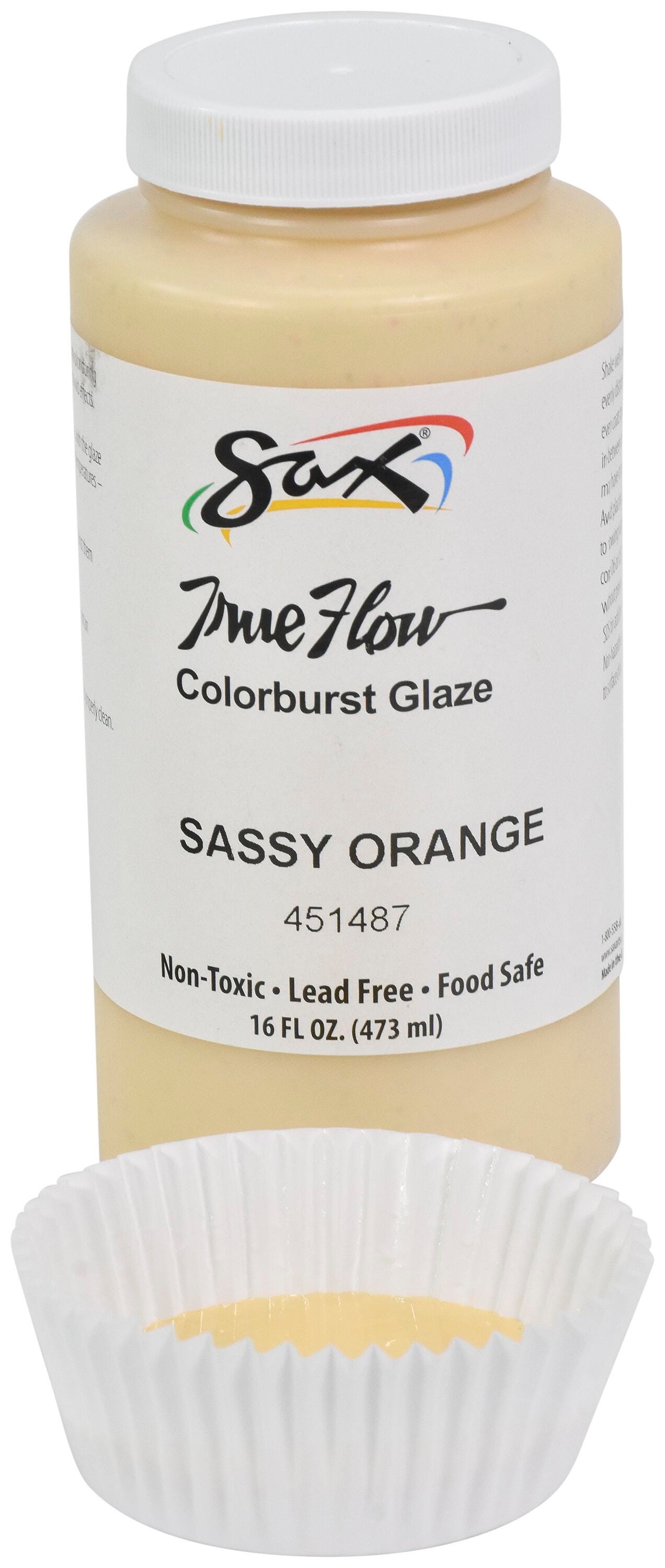 Sax Colorburst Glaze in Sassy Orange is ideal for one-of-a-kind pieces. Every application and firing will produce different results for beautiful, unique pottery and ceramics. The painting glaze may appear a different color during application and change to the desired look after the required firing in a kiln. Our ceramic glaze paint creates multi-colored patterns and designs when fired, with options to create dramatic effects by combining other glazes within a similar firing range. Crystals fade and run when fired at cone 6.Features