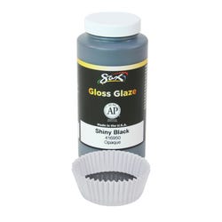 The Sax gloss glaze in opaque Shiny Black is a high-quality glazing paint that's non-toxic and dinnerware safe when fired to cone 06-05. During application, the glaze may be a different color and will change to the desired look after the required kiln firing. The color does not change when fired at cone 6.Features