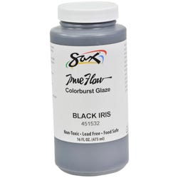 Sax Colorburst Glaze in Black Iris is ideal for one-of-a-kind pieces. Every application and firing will produce different results for beautiful, unique pottery and ceramics. The painting glaze may appear a different color during application and change to the desired look after the required firing in a kiln. Our ceramic glaze paint creates multi-colored patterns and designs when fired, with options to create dramatic effects by combining other glazes within a similar firing range. The base glaze boils and crystals turn white when fired at cone 6.Features