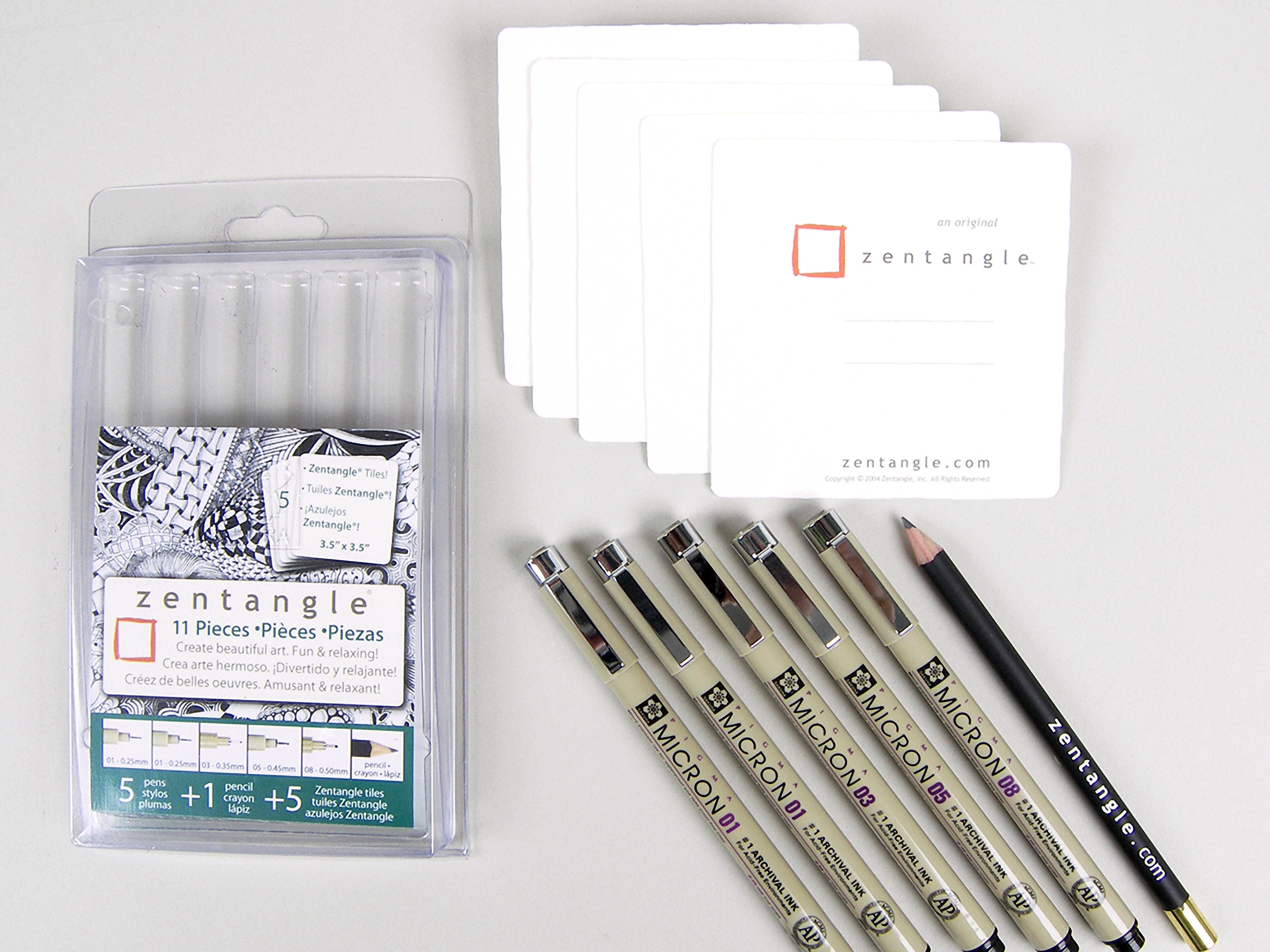 Sakura Zentangle Apprentice Classroom Set includes enough supplies for an instructor to use in a classroom of 24 students with 5 tangle sessions. Sold as a set of 193. Includes DVD with Follow-Along Teacher instructions.