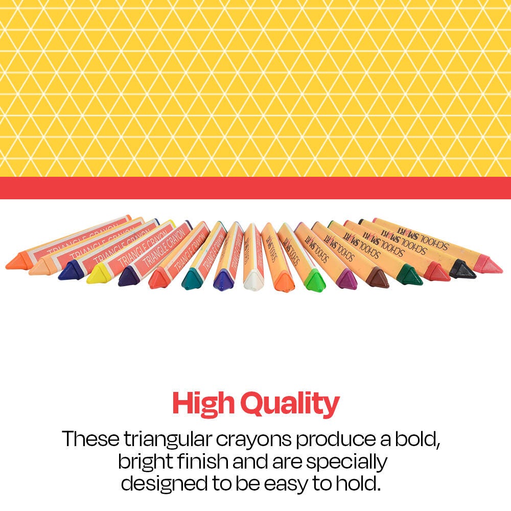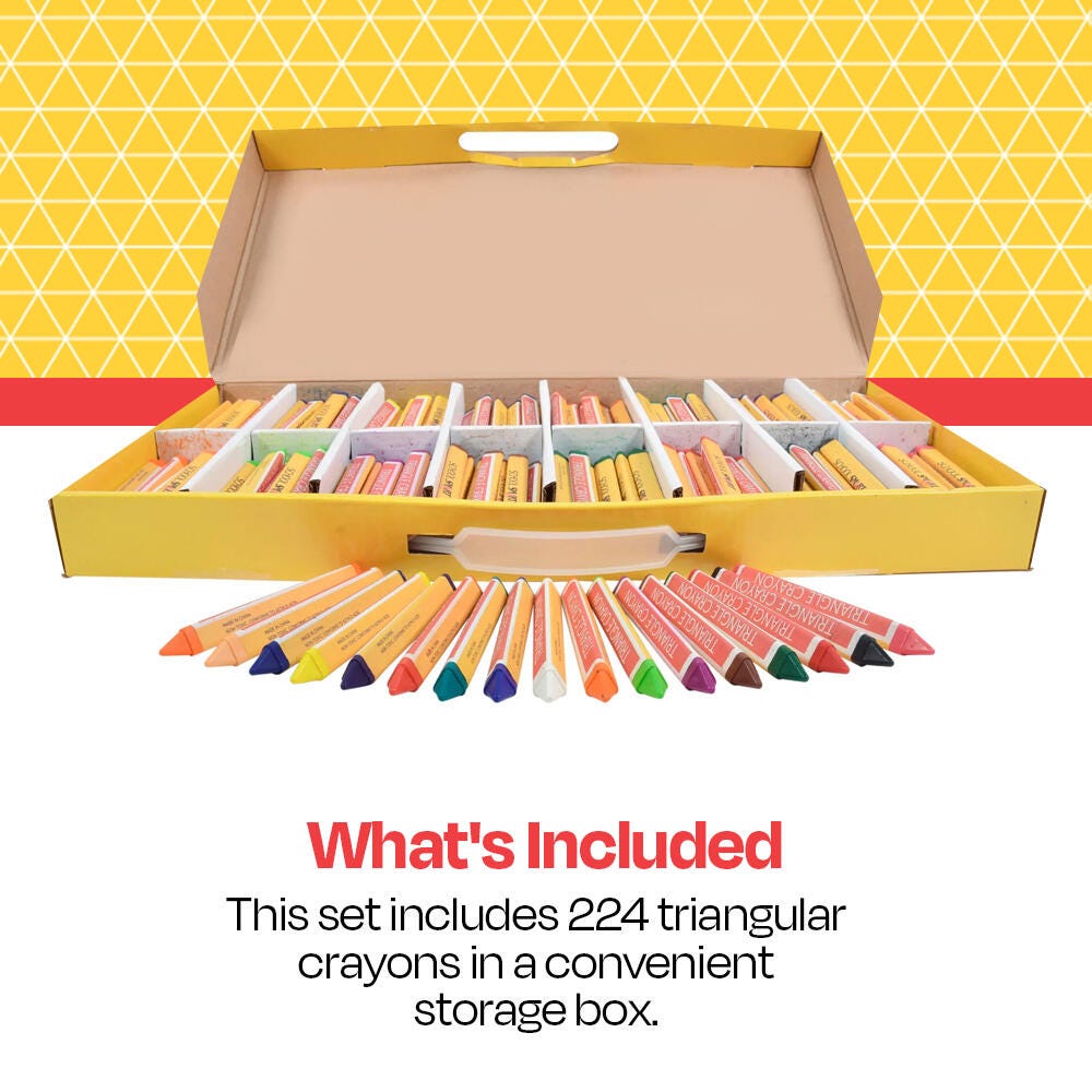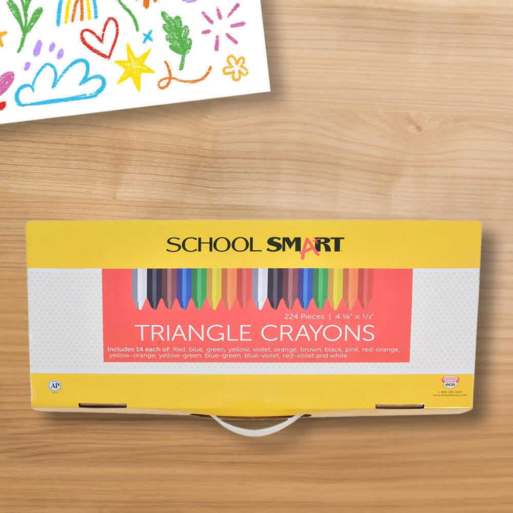 This triangular shaped crayons bulk pack by School Smart is great for children learning to write and draw. The triangle shape is ideal for young learners with an easy grip and shape that won't roll off desks or tables. This beginner crayon class pack of 224 triangular crayons is great for childcare centers, preschools, and after school centers.