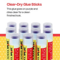 School Smart Glue Sticks, 0.28 Ounces, Purple and Dries Clear, Pack of 12