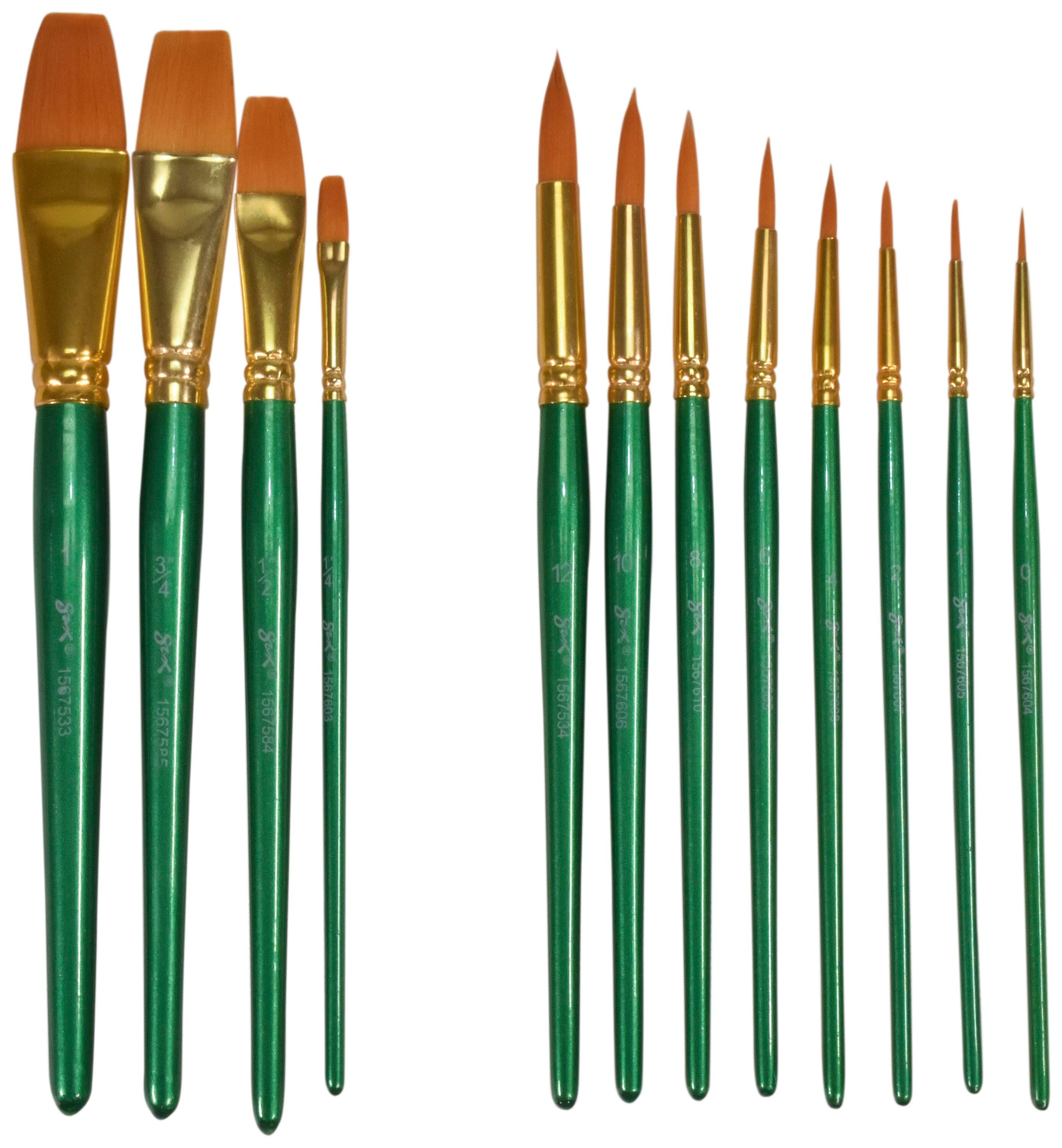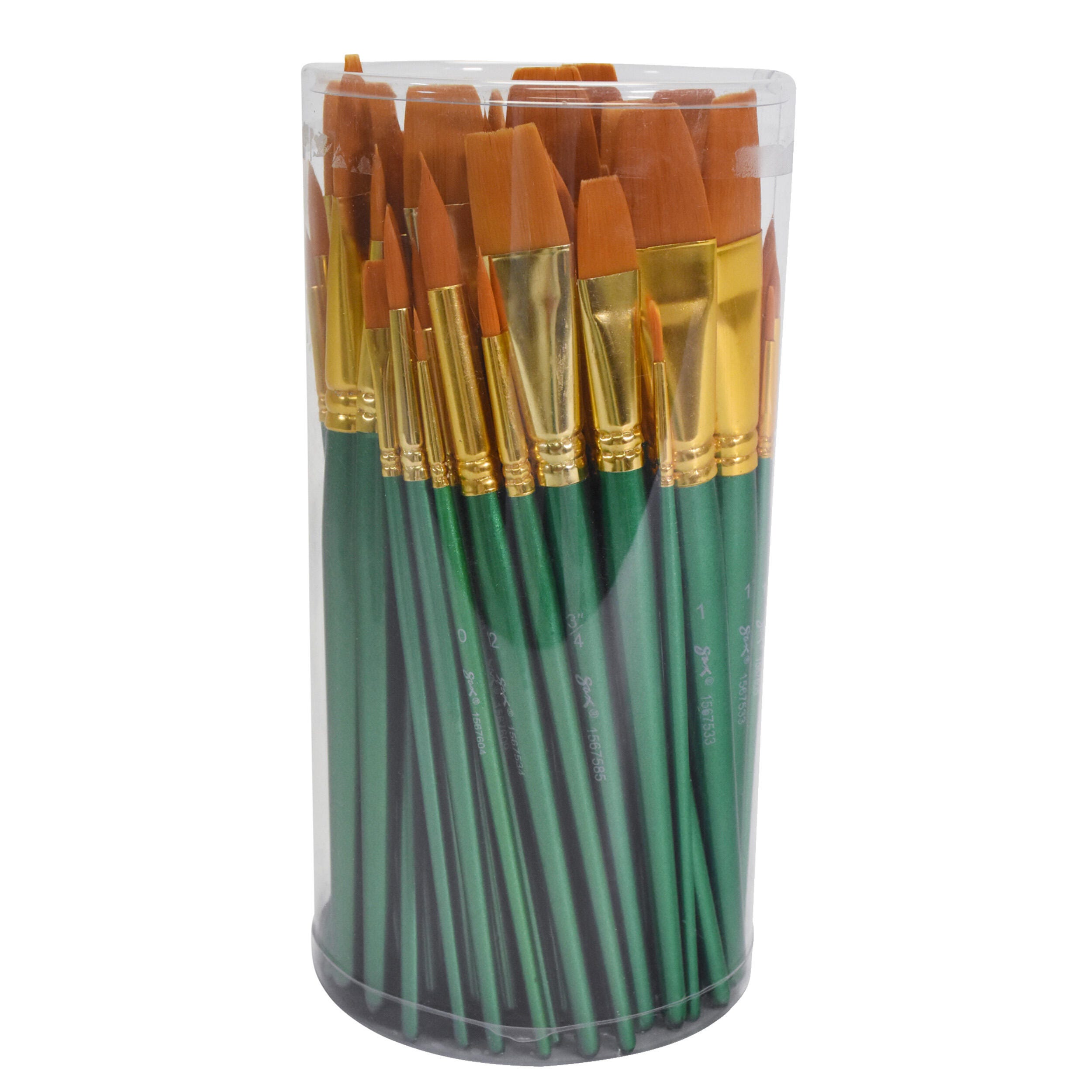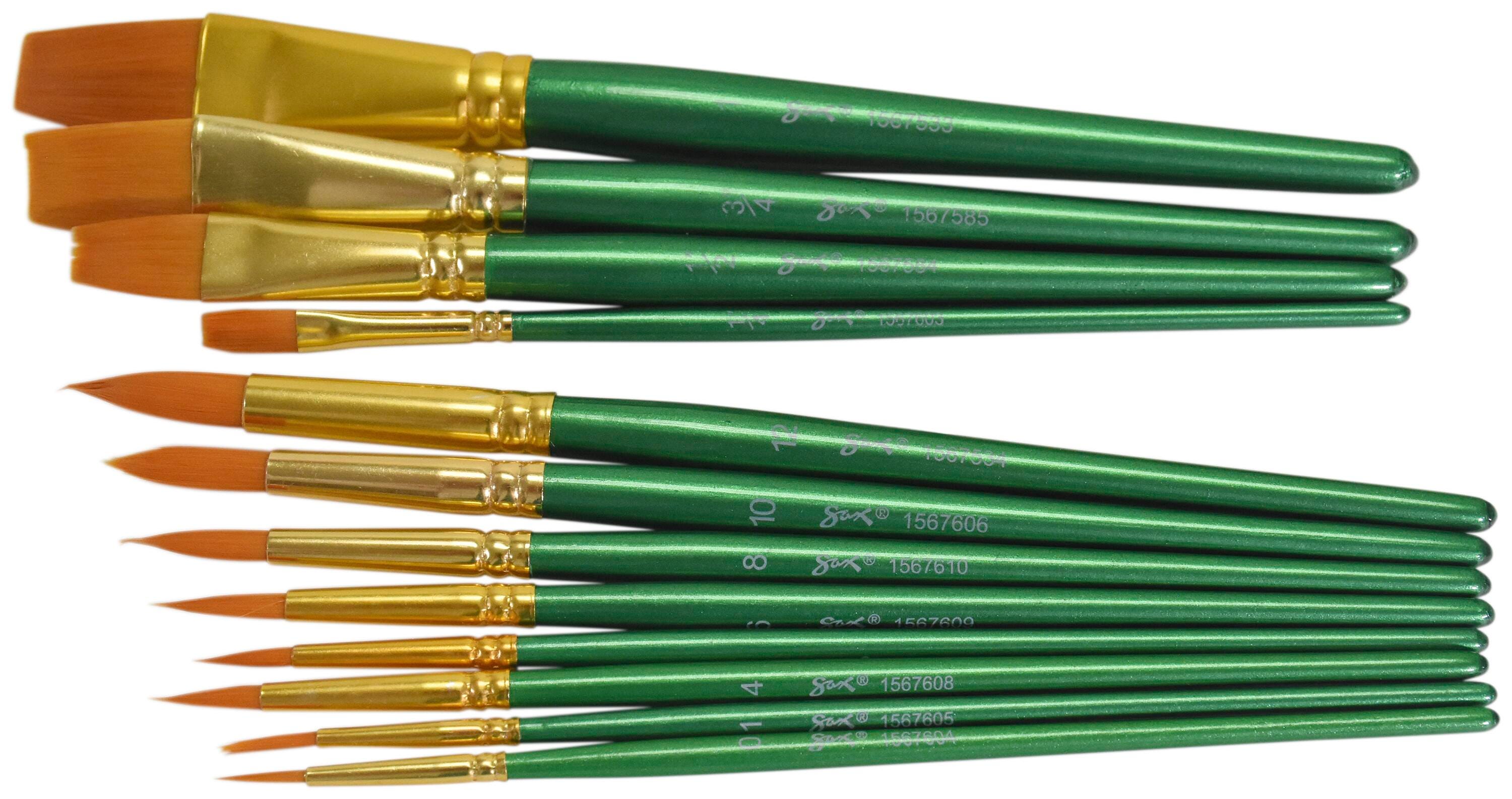 Sax golden taklon paint brushes provide superb color holding, spring, sharp edges, and smooth application. Optimal brush strokes help students create their best projects while enhancing their painting techniques on different mediums. Our 72-pack of assorted size synthetic bristle brushes is perfect for all of your crafting needs in the class or art studio. Use the golden nylon synthetic hair brushes with oil, acrylic, and watercolors.