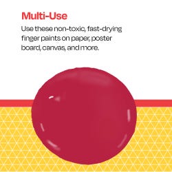 School Smart washable finger paint lets young children’s imaginations soar. This red washable finger paint comes in an economical 1 pint bottle. This paint can be used for painting indoors or outdoors and arts and crafts projects at schools, childcare centers, or homes. Children can explore the tactile world through hand and finger painting for beginners. Little hands have fun, while clean up afterward is a breeze for teachers and parents. The vibrant, fast drying paint for kids has a smooth texture. This non-toxic finger paint washes out of most clothing with soap and cold water.Features