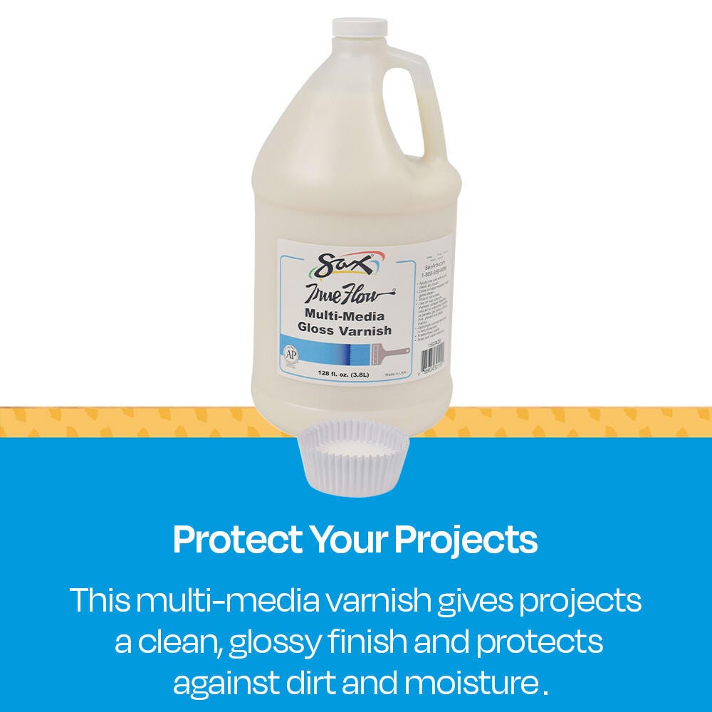 Protect your creative projects with this high-quality multi-media varnish from Sax! This all-purpose, non-smearing, water-resistant sealer is suitable for a variety of media, including wax crayons, water-based and permanent markers, collage materials, colored pencils, watercolor pencils, oil pastels, gel pens, printing inks, plaster, and papier-mache. The versatile varnish can be cleaned with simple soap and water. Use a clean, dry, soft brush for application. Begin by testing on a small inconspicuous area first.Features