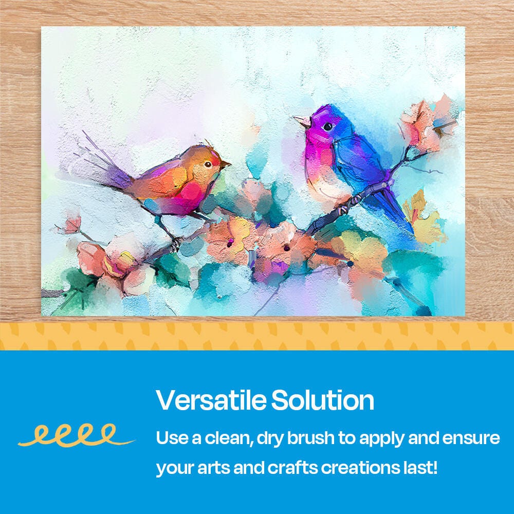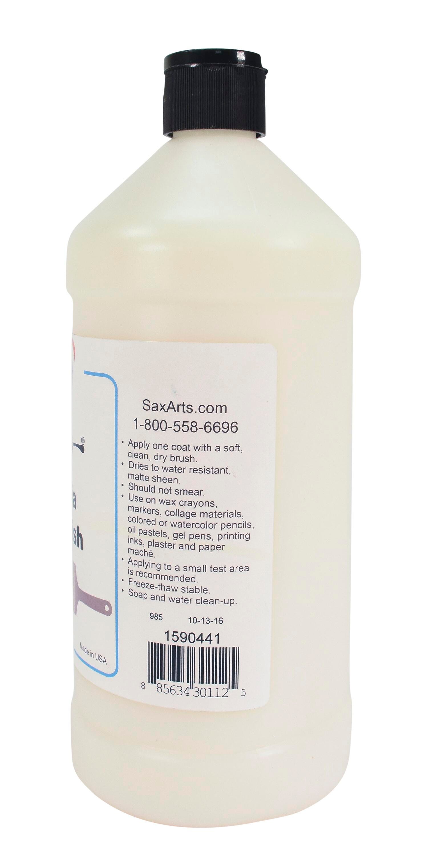 This all-purpose, non-smearing, water-resistant sealer from Sax lends a protective and professional finish to creative projects big and small! This Multi-Media Varnish can be used to protect a large variety of art media, including wax crayons, water-based and permanent markers, collage materials, colored pencils, watercolor pencils, oil pastels, gel pens, printing inks, plaster, and papier-mache. The versatile varnish can be cleaned with simple soap and water. Use a clean, dry, soft brush for application. Begin by testing on a small inconspicuous area first.