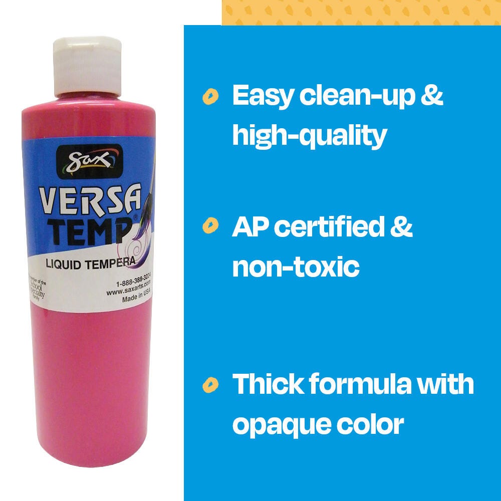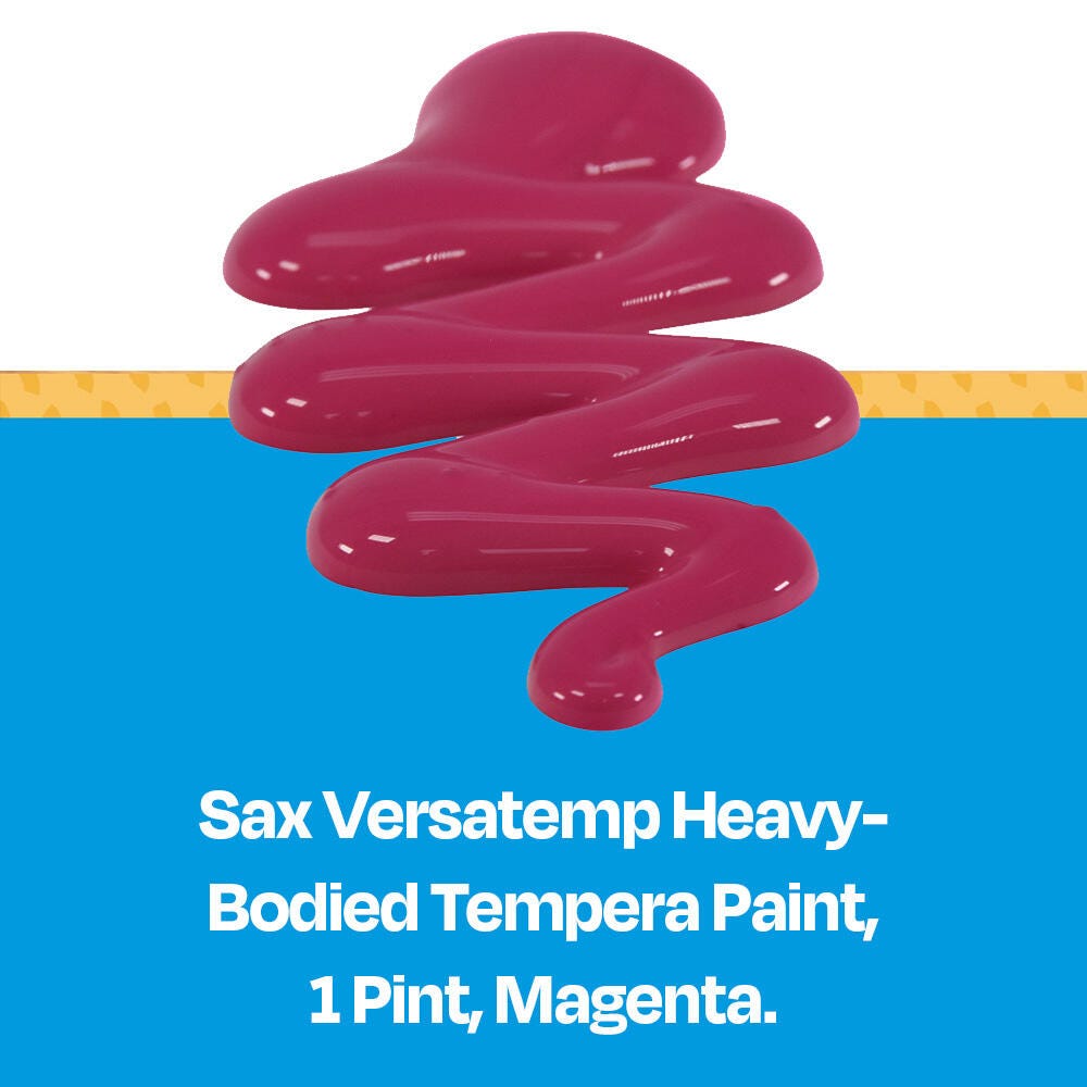 Sax Versatemp heavy-bodied tempera paint in magenta produces bold, vibrant results. Foster creativity with a paint that resists cracking and chipping. The convenient pint bottle is easy to pour and store, and is perfect for sharing in the classroom. Complete art projects, posters, and signs that stand out with one shade or craft new hues by mixing. The heavy formula is easy to apply and mix.
