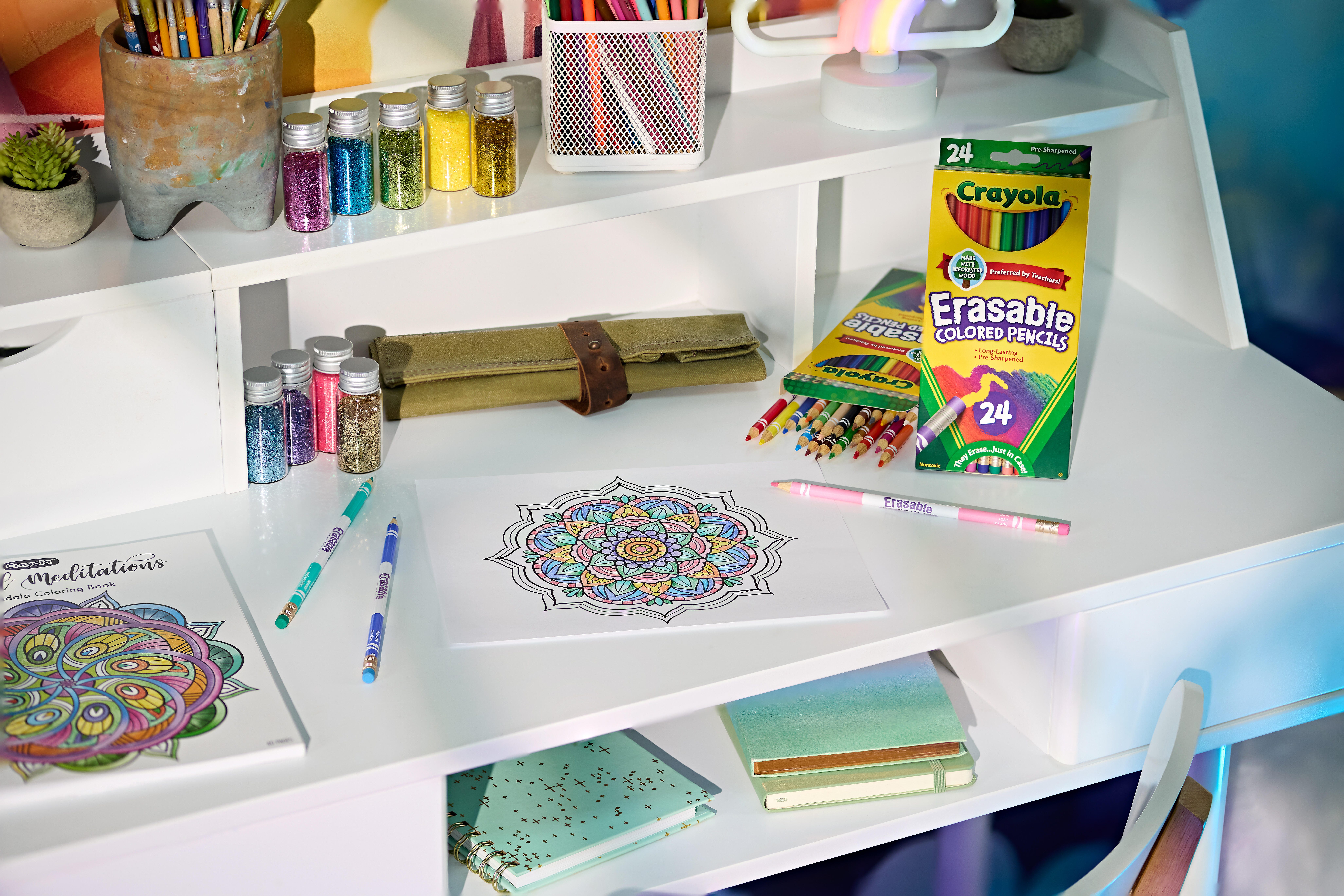 Take the pressure away with Crayola Erasable Colored Pencils! The bright colors you love are now conveniently erasable.