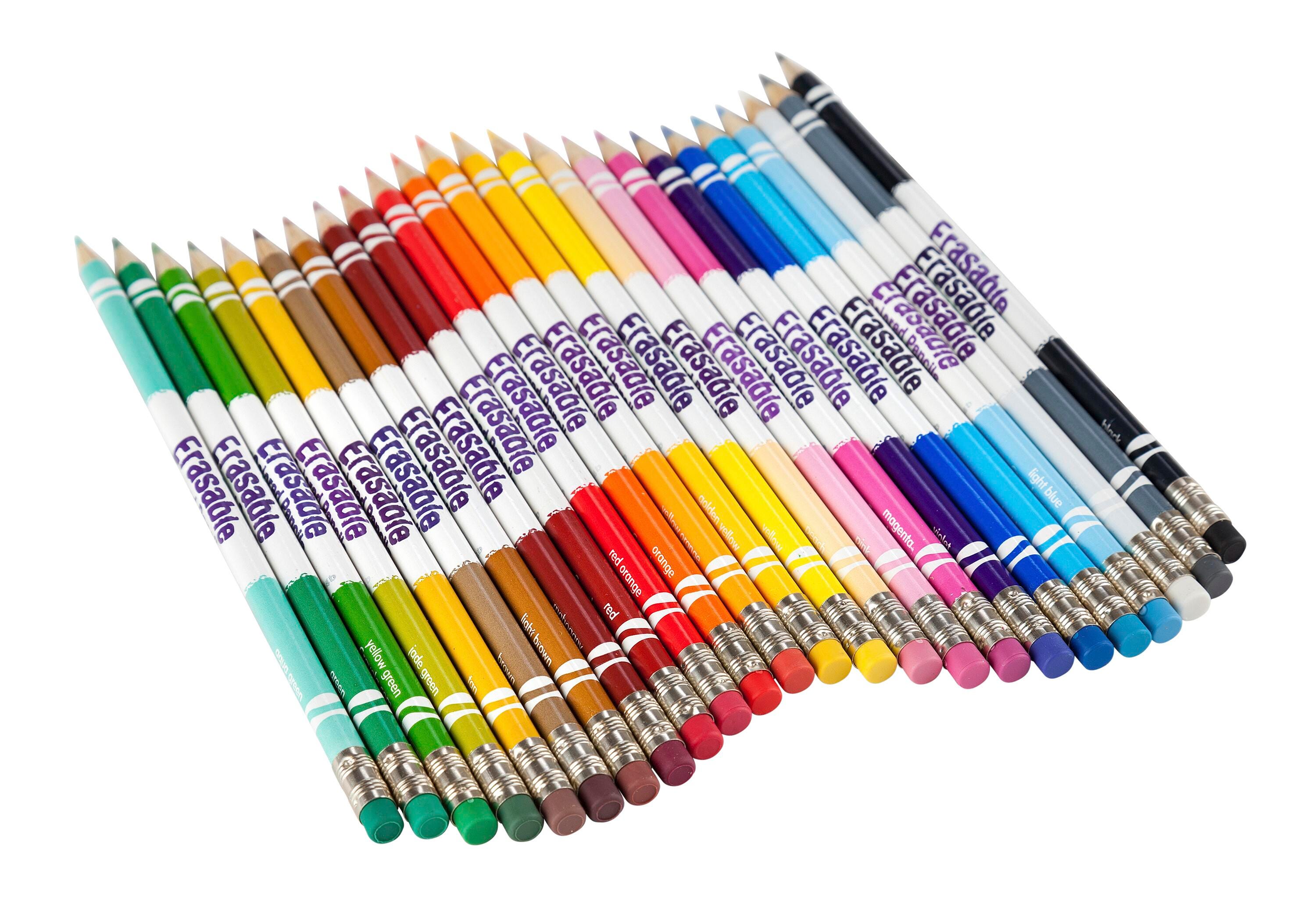 The Crayola Erasable Colored Pencils make creative activities easier than ever! The integrated eraser allows you to easily correct mistakes, taking the pressure out of your projects. Plus, these pencils deliver rich colors that pop right off the page for coloring, doodling, drawing, homework, and more! This pack of 24 contains pre-sharpened pencils in an assortment of colors.Features