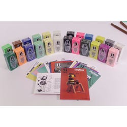 Claytoon Clay Project Studio Kit is preferred by sculptors, animators and artists of all skill levels. Class pack contains twenty-four 1/4 lb bars of assorted color clay, 12 project cards with step-by-step directions for building the characters, 8 sets of bendy bones, 5 modeling tools and a clay knife. Class pack allows to build and mold whimsical, humorous characters with brilliant color range and smooth consistency.Features