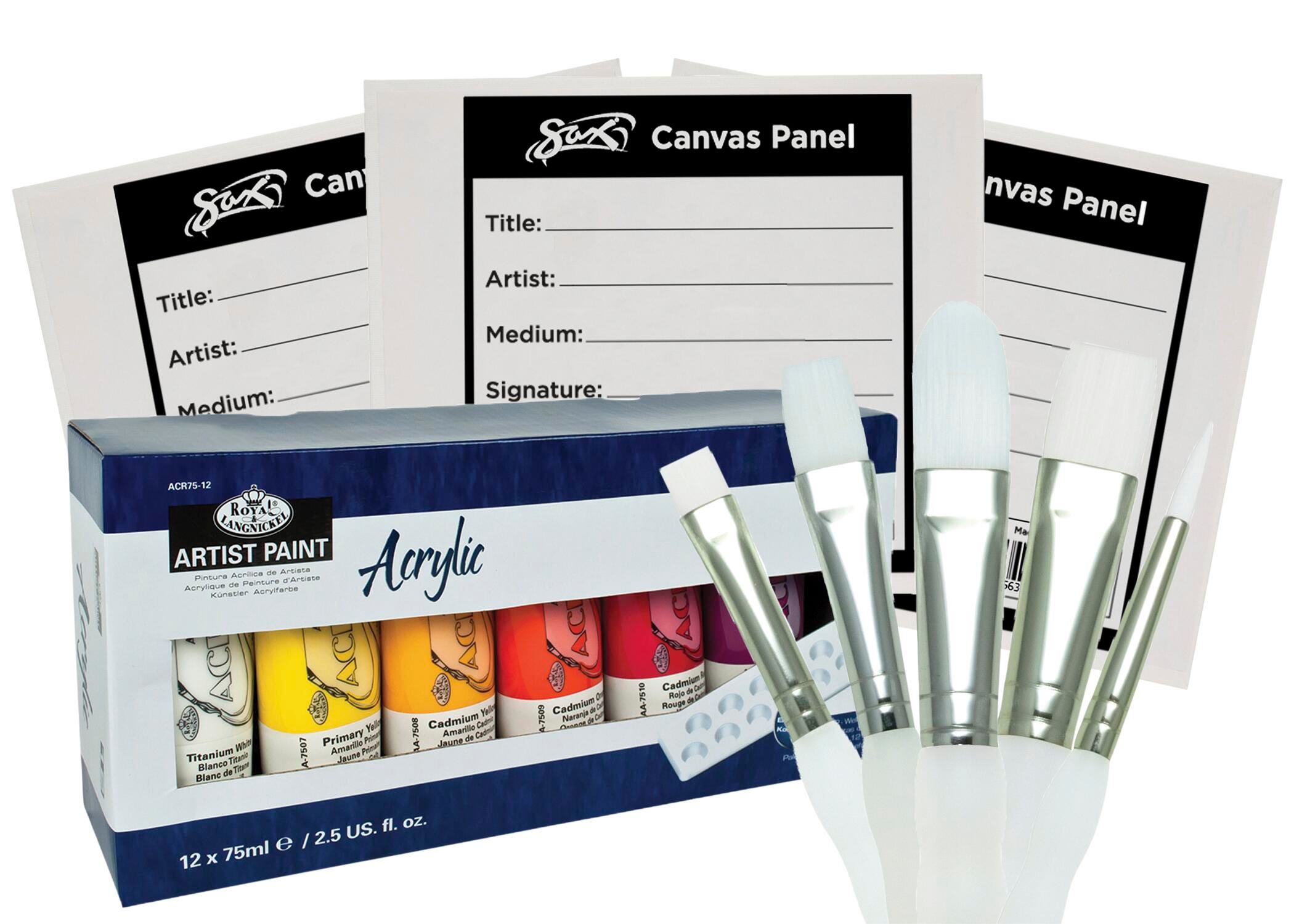 • Set of 12 Assorted Color Acrylic Paints (2-1/2 Ounces Each)