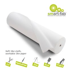 Smart-Fab Non-Woven Fabric Roll measuring 36 in x 600 ft in white is an innovative artistic and educational medium. It's bold, brilliant colors are in the material itself, so they won't fade and look great from either side. Soft and pliable yet strong and durable, smart-fab won't rip, fray or wear out, yet it's easy to cut, fold, twist, crimp, ruffle and glue. The cloth-like texture makes it pleasant to handle, yet firm enough to be used in 3-D creations and it is great for outdoor use. It is water and wear resistant but can be easily colored with paints, crayons, markers and all popular art media. Roll is also convenient to store, supplied in rolls that fit standard paper roll racks.Features