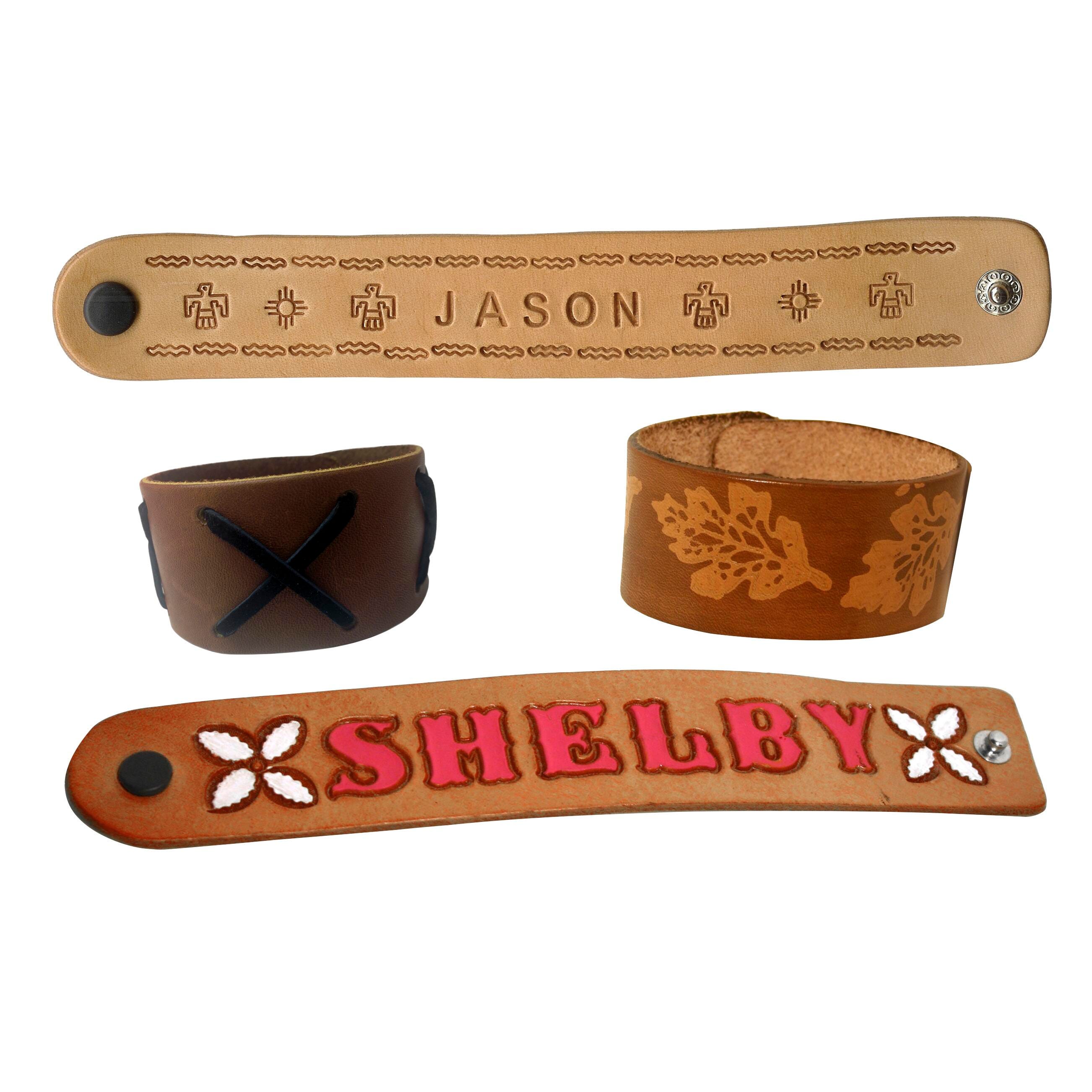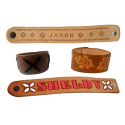 Silver Creek Leather Wristband is made from natural, tanned cowhide ready to stamp, color and finish. Small wristband measuring 1 x 8 inches is sold as 24 per pack.Features