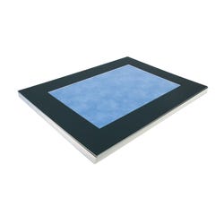 Your students' artwork deserves a quality presentation—and these pre-cut mats from Crescent have you (and your artistic masterpieces) covered. Sturdy, buffered cardboard frame (measuring 18 x 24 inches) comes in solid black with a perfectly sliced-out window middle (measuring 11-1/2 x 17-1/2 inches) and a backboard for instant insertion of your photo or art print. Clean 45-degree bevel cuts add a refined look to the corners. Uniform lines allow you to position pictures either vertically or horizontally. Backing boards have a smooth finish on 1 side and a linen-like texture on the other; note that colors of both sides may vary (Applies to backboards only). Set of 10 pre-cut mats.Features