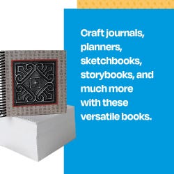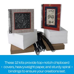 Students of all ages can sketch, write, and design with this innovative, all-in-one Journal Bookmaking Kit! This kit is ready to make 12 chipboard-covered, spiral-bound books with 50 white (80 lb weight basis) paper sheets inside for sketching, writing, and beyond. The inside and outside of journals can be embellished with nearly any medium, including gel markers, paint, mosaics, specialty paper, and glitter glue. This versatile kit is a great way to introduce free-form writing, gratitude journals, writing a "first book", quiet time activities, planners, and more at home or in the classroom. The binding coils are black. The pages and covers measure 6 x 6 inches.Features
