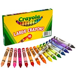 Large size crayons are double wrapped for extra strength and durability and come with a wide range of colors that makes it popular with schools. Crayons measure 4 x 7/16 inches and are non-washable.Features