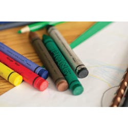 Prang Master Pack Assorted Large Crayons measuring 4 in x 7/16 in each with larger diameter offers high grip and easy control. Pack highly suits classrooms, camps or any place that uses large volumes of crayons. It comes with 50 each of red, orange, yellow, green, blue, purple, brown and black in a storage box with carrying handle. Sold as 400 per set.Features
