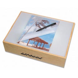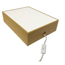This display lightbox from Inovart features a refined oak-finished frame, U.L.-approved components, an instant on/off switch, and an 8 watt fluorescent lamp that produces cool daylight that is easier on the eyes. Lightbox is designed for tracing, opaquing, stripping, transparency or slide viewing, and sorting. Lightweight and durable. 110 AC.