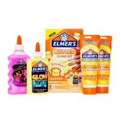 Spread some fun with the Elmer's Butter Slime Kit! This kit includes 2 tubes of Butter Slime Activator, the key ingredient that turns Elmer's Glue into a smooth, buttery slime. It also contains Elmer's Glow in the Dark Glue and Elmer's Glitter Glue, to add an extra dimension of fun to your slime. These specially formulated washable glues are safe and non-toxic, making them an ideal choice for children.Features