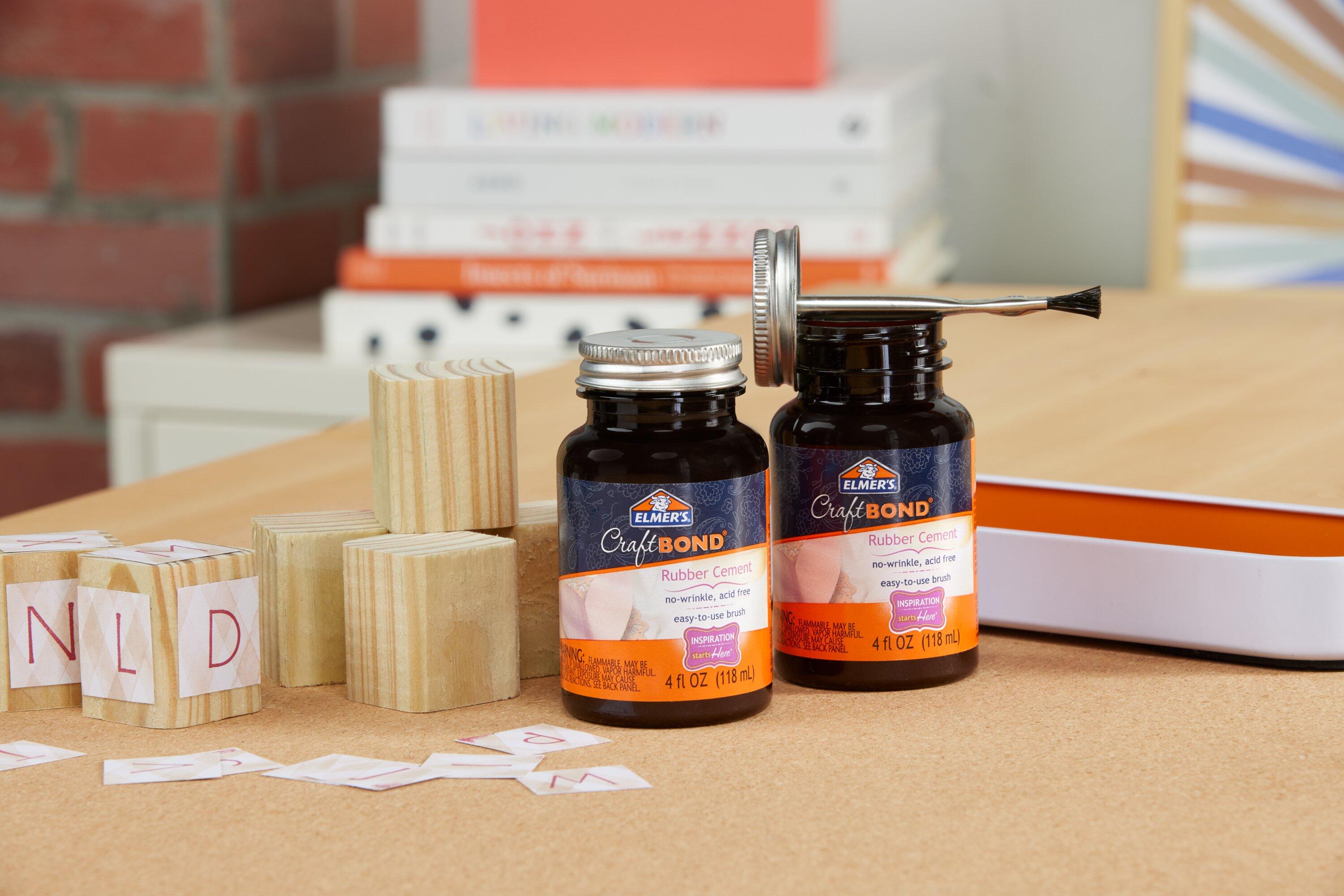 Elmer's CraftBond Rubber Cement delivers a strong bond for a variety of craft projects. The rubber cement is suitable for temporary or permanent bonding that won't wrinkle or stain paper. For a more temporary bond that can be repositioned, apply on one surface, or apply on both surfaces for a more permanent bond. The handy brush applicator built into the lid makes application easy. Any excess cement can be rubbed off easily once dried. Sold in a 4 ounce shatterproof jar.Features