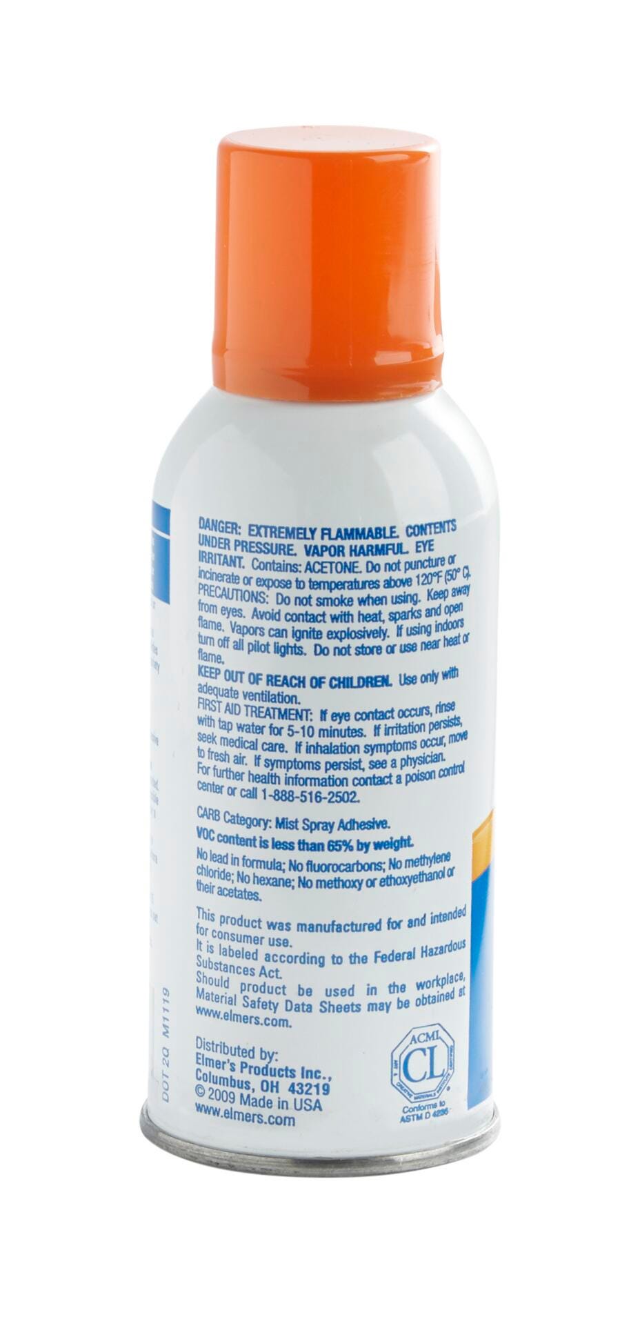 The reliable adhesive you trust now comes in a convenient aerosol spray! This Multi-Purpose Spray adhesive from Elmer's is capable of forming temporary or permanent bonds on many lightweight materials. The fast-tak spray is great for adhering paper, plastic, leather, fabric, foam, photos, and more! Turn to this versatile adhesive for creative and functional projects in the classroom, home, or office.Features